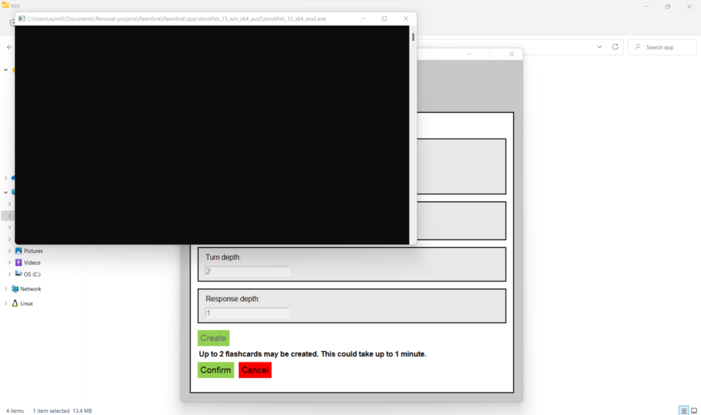One of the issues I encountered when packaging up my code into an executable file using PyInstaller was that when the resultant Pawnfork application was running, a rogue terminal window would open whenever the Stockfish engine was used: