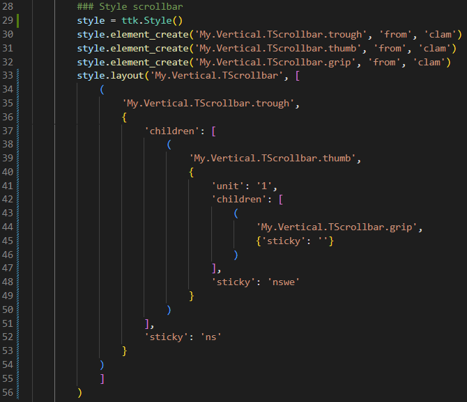 What’s wrong with Tkinter then? For a start, it’s a bit ugly. That is to say that apps built using Tkinter tend to be less Xabi Alonso, more Jay Spearing. Pawnfork itself is rather “utilitarian” in appearance, and although it is feasible to build attractive, modern-looking apps with Tkinter, they certainly don’t make it easy. The default look and feel of many widgets is very 90s, and customisation means interfacing with the horribly unintuitive ttk.Style API. Here’s some example code from my Catan project, that uses this API to style a scrollbar: