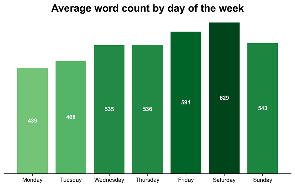 Word count changes according to day of the week, too, as you can see from the figure below:
