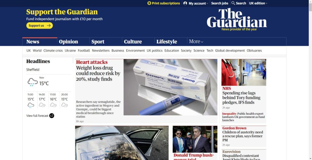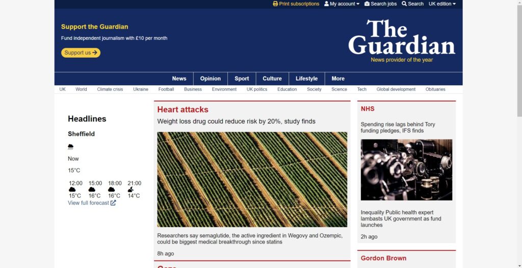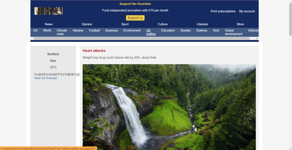 Given the new model’s speed and improved image capabilities, I thought it’d be interesting to give it a whirl by getting it to produce the HTML and CSS to recreate The Guardian’s website home page, which as of this morning looked like this: