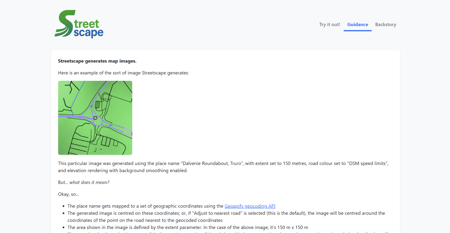 This is probably as far as I’ll go with Streetscape now – I’m running out of ideas for improvements, and regardless of anything else, this was and is a very niche offering; a showcase for a piece of academic work, rather than anything genuinely useful in its own right.