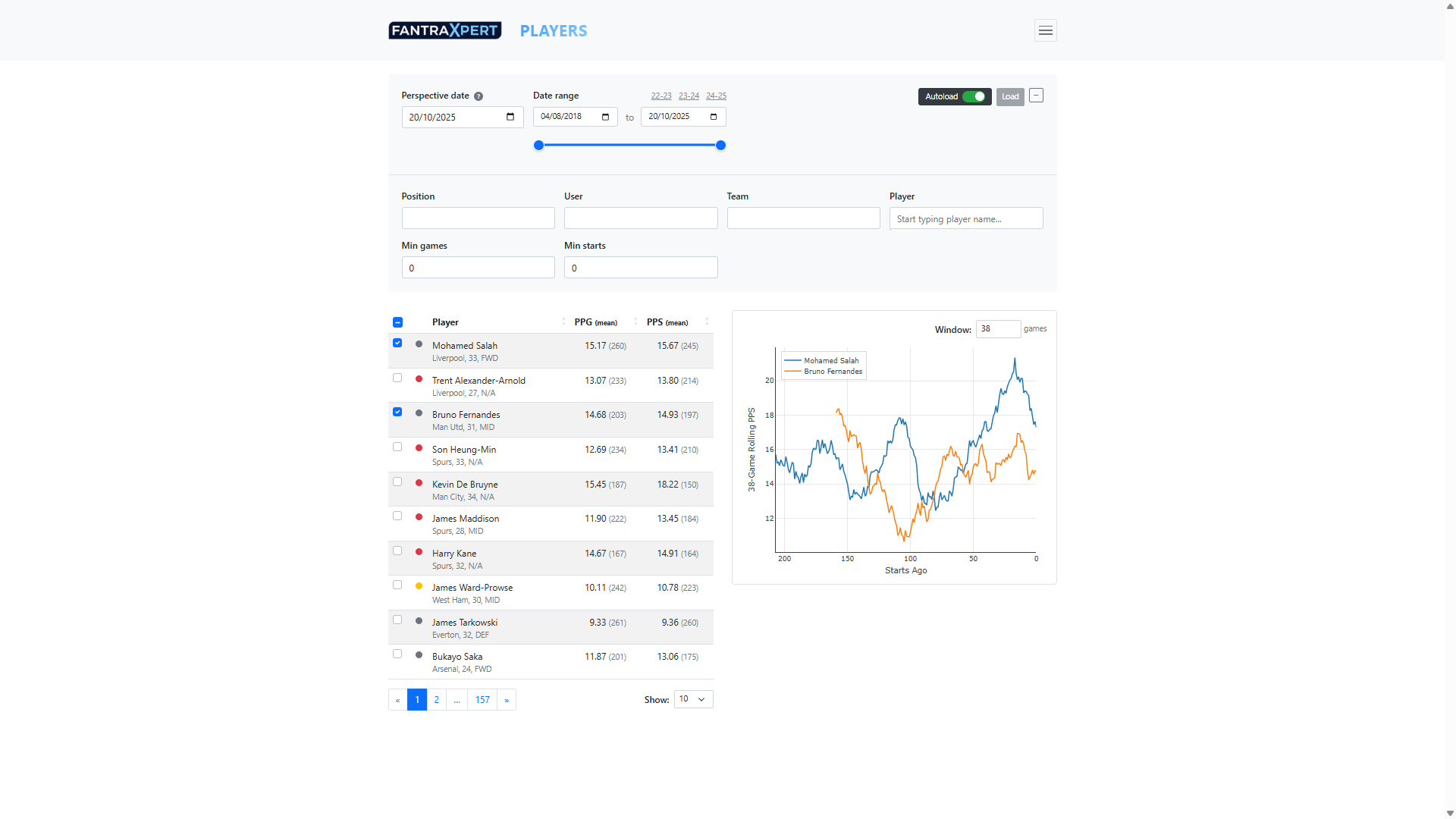 - Player points prediction – in the very first month of developing this application I created an ML model to do this, but priorities shifted over time and we now don’t have anything similar. It’d be pretty cool if you could go to the “Players” page and see how many points each player is predicted to score in the next 1 to X games