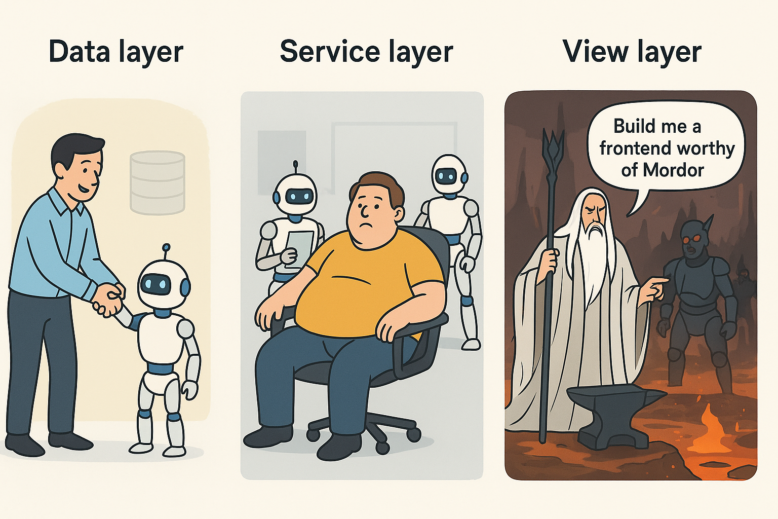 The image below visualises the nature of my cooperation with AI in developing each of the three software layers: